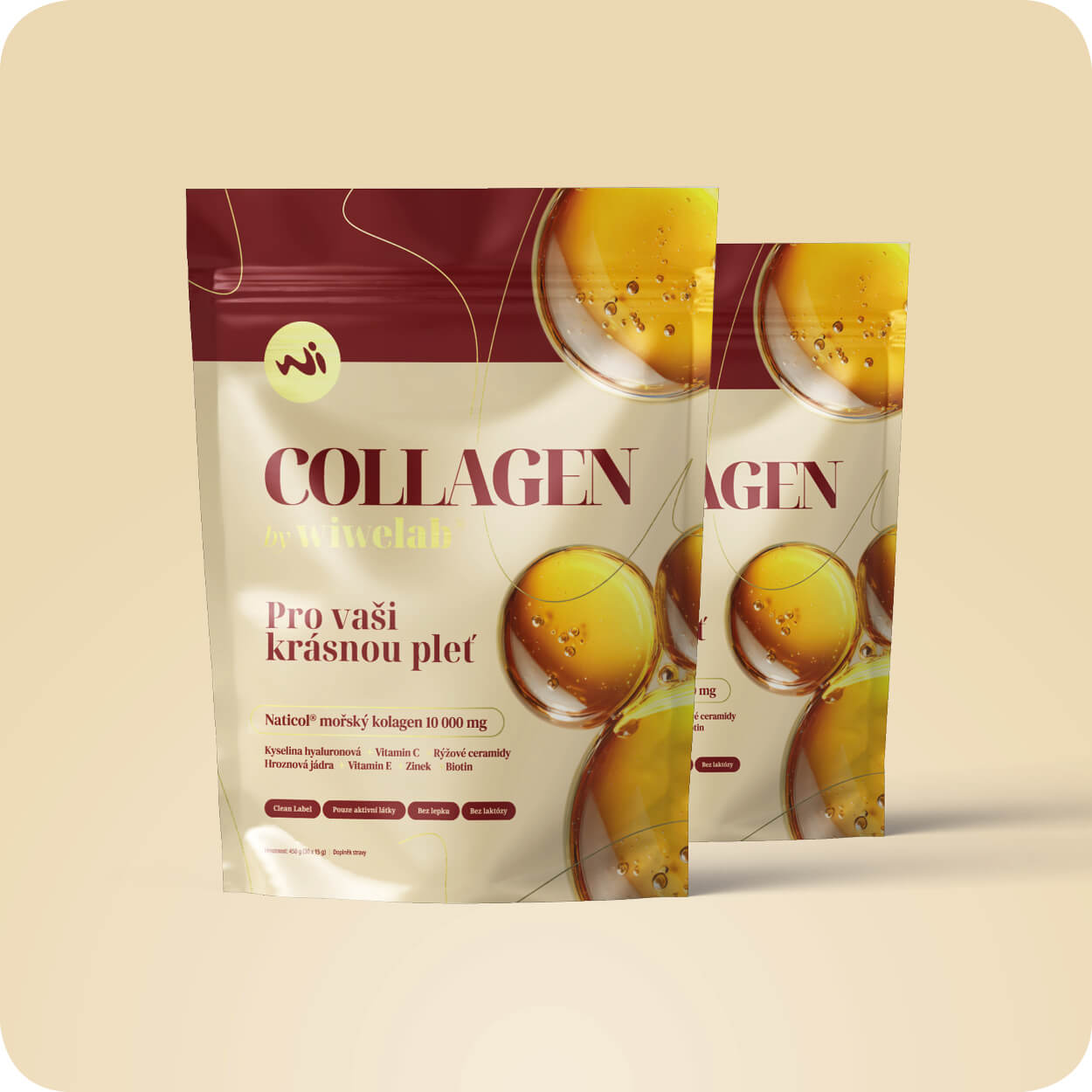 Krásná, pevná a hydratovaná pleť je symbolem mladistvého vzhledu a svěžesti, což ovlivňuje naše sebevědomí. COLLAGEN BY WIWELAB® je prémiový doplněk stravy vyvinutý tak, aby podpořil vaši krásu zevnitř. Spojuje klinicky ověřené účinky exkluzivního mořského kolagenu Naticol®, kyselinu hyaluronovou, rýžové ceramidy, vitaminy a minerály do unikátního beauty komplexu. Synergie těchto aktivních látek působí na krásu a svěžest pleti ze všech stran – posiluje kolagenová vlákna, hydratuje, chrání před oxidačním stresem, podporuje její přirozený jas a má významný anti-agingový efekt.