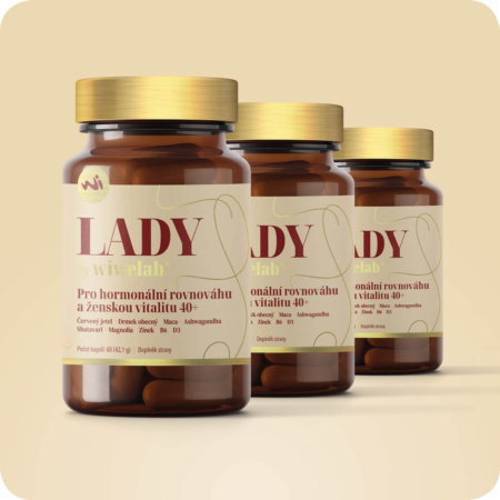 LADY BY WIWELAB® – když chcete zůstat sama sebou, silná, vyrovnaná a plná energie. Prémiový doplněk stravy pro ženy 40+ s fytoestrogeny, adaptogeny a vitaminy. LADY BY WIWELAB® podporuje hormonální rovnováhu, ženskou vitalitu a pohodu v období perimenopauzy a menopauzy.